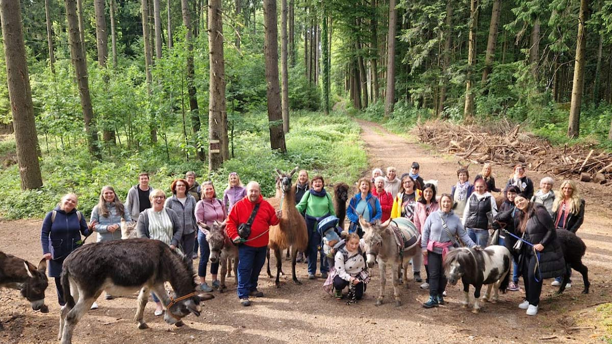 Los ging’s mit einem spritzigen Sektempfang und knusprigem Laugengebäck, um perfekt in die Feier einzusteigen. Das Highlight stand aber noch bevor: Gemeinsam mit 16 tierischen Freunden – Alpakas, Lamas, Eseln und Ponys – starteten alle gemeinsam zu einer zweistündigen, geführten Wanderung. Es war eine fröhliche Truppe und manch ein*e Mitarbeiter*in überlegte, ob man nicht in Zukunft vom Dienstfahrzeug auf den Esel umsteigen sollte. Wer braucht schon Autos, wenn man so charmante Begleiter hat?